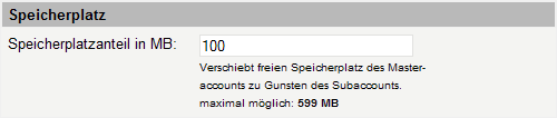 viel des verfügbaren Speicherplatzes Ihres Tarifs für den Subaccount